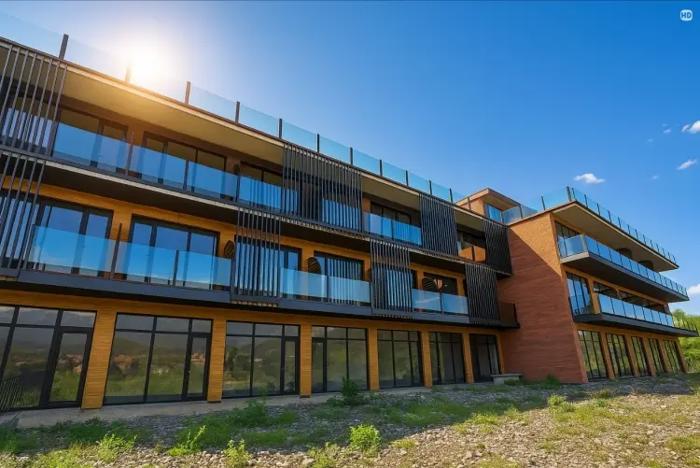 Продается новый гостиничный комплекс на 36 номеров в Бакуриани, рядом с двадцатью пятью лыжными подъемниками, общая площадь территории составляет 2200 кв. м. Здание состоит из 1800 кв. метров, укомплектовано соответствующей мебелью, в настоящее время осталось лишь провести ремонтные работы на первом этаже. Продается в текущем состоянии или с полным ремонтом.