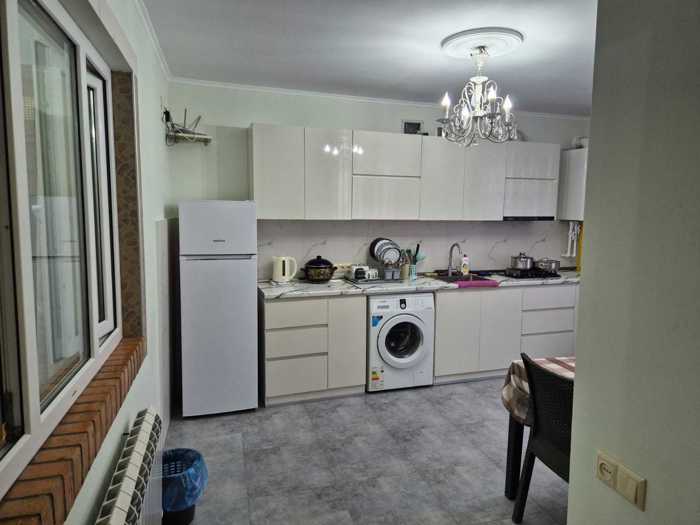в аренду! В легкодоступном месте в Цкнети, 2-х этажный нестандартный комфортабельный дом с двором 700 кв.м, высоким забором, балконом, центральным и половым подогревом, камином, баром, 3 спальнями, интернетом, полностью меблирован. С благоустроенным двором, верандой, 2 санузлами и парковкой. Также новый ремонт, посуда, стиральная машина-автомат, телевизор, холодильник, электрочайник, интернет, . посудомоечная машина.