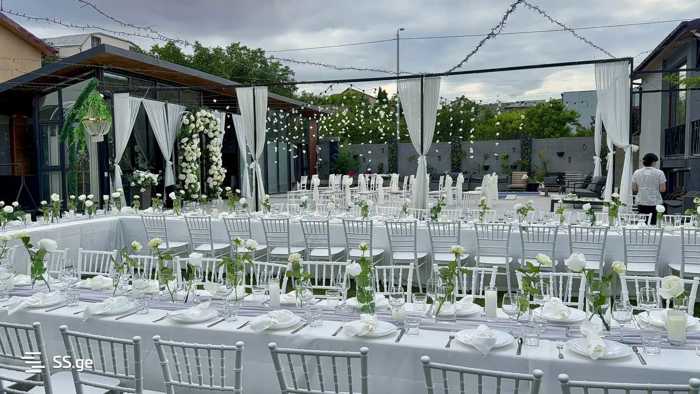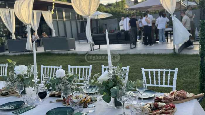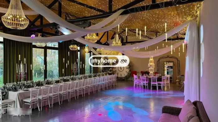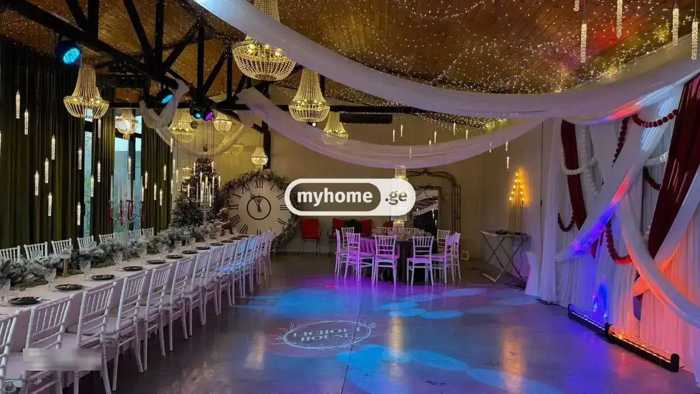 Акция в этом месяце!! Сдается дом для вечеринок. В помещении вас встретят: 2 кондиционированных зала (подземный зал со звуковыми системами, лазерами и диско-шаром) с инвентарем. Столы, стулья, посуда. Полностью оборудованная кухня, во дворе мангал, 2 ванных комнаты, 1 спальня и 2 зоны отдыха, а также на 3 этаже есть 2 дополнительные спальни и 1 ванная комната (не входит в начальную стоимость). Дом полностью укомплектован всем необходимым инвентарем, 1500 квадратных метров двора с открытым бассейном (учтите, что двор контролируется видео камерами). Цена зависит от количества гостей; у нас есть как фуршет, так и грузинское столовое обслуживание, а также оформление (на день рождения, свадьбу и другие мероприятия). Цена варьируется в зависимости от дней и количества.