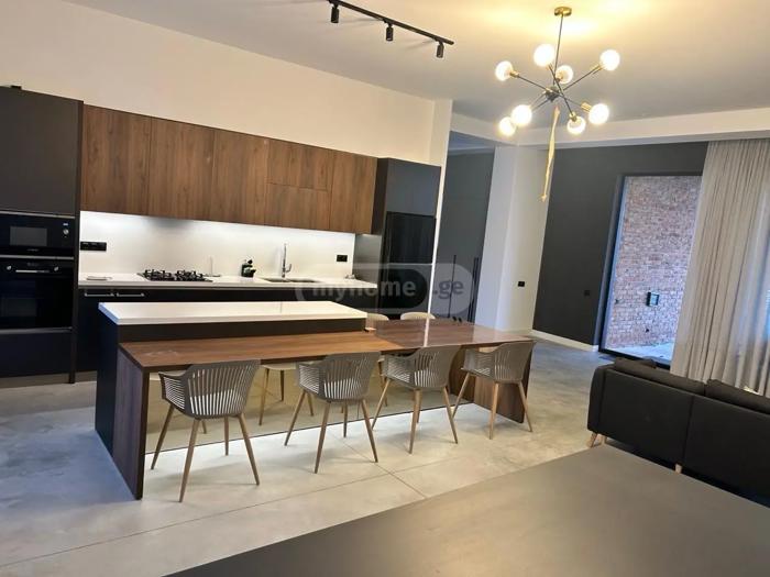 Сдается дом на длительный срок в закрытом комплексе Villa Saguramo, индивидуальный стиль шале, 3 этажа, 270 м2, дизайнерская мебель, 3 спальни 22, 18, 16 м2, 3 ванной, кабинет, зал 30 м2 с домашним кинотеатром и LED телевизором, кухня 17 м2, оборудованная техникой Bosch, многофункциональный тренажер, винный погреб 50 м2, бочковый интернет, телевидение, вода, электричество, газ, центральное отопление, терраса 30 м2 с барбекю, участок 750 м2 с английским газоном и поливом, деревьями, японский сад с патио, крытая парковка на 5 автомобилей, бассейн.