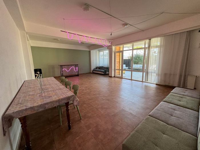 Сдается комфортный 3-этажный дом для мероприятий, расположенный в безопасном месте с идеальным доступом рядом с трассой Ортечьала, укомплектованный профессиональной колонкой с мощным звуком. С клубной подсветкой. Бильярд, 3 спальни (спальное место для 12 гостей+), большая терраса, просторный танцевальный зал площадью 60 кв.м с прекрасным видом на реку Мтквари, обогреватели, 4 ванные комнаты и 2 кухни, изолированное пространство для фуршета рядом с танцевальной зоной, wi-fi на этажах, кондиционер в каждой комнате, отопление/охлаждение, кухня оборудована больше, чем вы ожидали, настольные игры, такие как нарды, мафия, покер, уно, доступны, кухня полностью укомплектована (приборы, шампуры, кулер для воды, пластиковые и стеклянные чаши для пунша, подносы, чаши, контейнер для охлаждения шампанского, посуда предоставляется, вы можете принести одноразовую посуду (по желанию)). Фуршетный стол, холодильник, микроволновая печь, пледы, скатерти, двуспальные и односпальные кровати, раскладной диван (вместимость до 12 гостей). Декоративная арка из шаров и стол для оформления торта. У реки Мтквари. Со своим берегом. Без ограничений по шуму. Изящная обстановка. Специальный DJ-стол. Адрес: Тбилиси, легко добраться на общественном транспорте. Рядом с джипом. В цену включена колонка 1000w с функцией Bluetooth, клубная подсветка, диско-шар, стробоскоп, светодиоды, вспышка, лазер, сенсорное освещение, освещение террасы, уборка также включена, на месте есть дополнительное оборудование. Колонка, «Басавик» и «Микшер» с мощным звуком, Pioneer DDJ RB, машина для дыма. Вход с 15:00 до 11:00 следующего дня. Вместимость до 60 гостей. До 25 гостей - 600 GEL, суббота +100 GEL.. фактически обстановка лучше, чем на фотографиях. Важно, что здесь достаточно просторно, у вас останутся хорошие воспоминания.