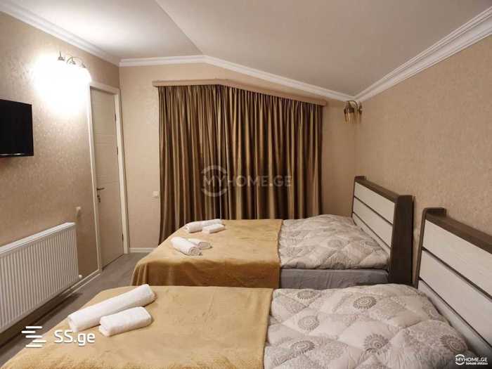 Сдается новый частный дом посуточно, с жилой площадью 500 кв.м и двором в 800 кв.м. В доме имеется 5 комнат и 5 спален, что идеально подходит для большой семьи или группы друзей. В интерьере есть современная кухня, столовая и обеденный стол, что создает комфортную обстановку для совместного времяпрепровождения. Спальни просторные и светлые. Цена за двухместный номер составляет 100 лари, однако цена обсуждаема.