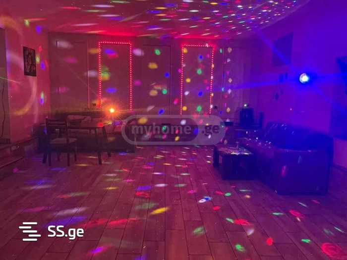 Сдается посуточно 2-этажная квартира в Сабуртало, на Джикии (200 кв.м). Цена зависит от количества гостей. Для 1-10 гостей 400 лари, для 11-15 гостей 450 лари, для 16-20 гостей 550 лари. Более 20 гостей не принимаем. В квартире вы найдете: 2 зала Кухня (холодильник, микроволновая печь, электрочайник) 2 санузла 2 спальни Фото зона (стойка с блестками) Электронный декоративный камин. Колонки и освещение Небольшой двор.