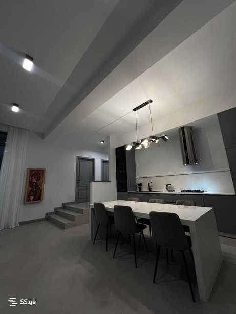Сдается новая, не заселенная квартира в престижном, экологически чистом и уютном месте, в 15 минутах езды от Тбилиси - Сагурамо (Навдараанткари), с зеленым и хорошо оборудованным двором (автоматическая система полива лужаек и цветников), во дворе место для парковки для 4 автомобилей. Первый этаж имеет лучшие виды с террасы, а второй этаж с просторного балкона. Терраса первого этажа соединена с плавательным бассейном размером 9X3 метра. Двухэтажный дом освещен окнами и балконами с четырех сторон; на первом этаже дома: гостиная с камином и подогревом пола, выходящая на террасу через широкие раздвижные двери, здесь также находится кухня, оборудованная новой брендовой техникой. (Газ, плита, вытяжка, посудомоечная машина и так далее). На первом этаже также есть входной гардероб и кабинет, а также санузел. Первый этаж соединяется с вторым этажом лестницей из натурального камня, где находятся три спальни со своими балконами и две ванные комнаты, одна из которых принадлежит одной из спален - так называемая мастер-спальня. Квартира сдается минимум на один год, и ее меблирование будет осуществляться по согласованию с потенциальным арендатором.