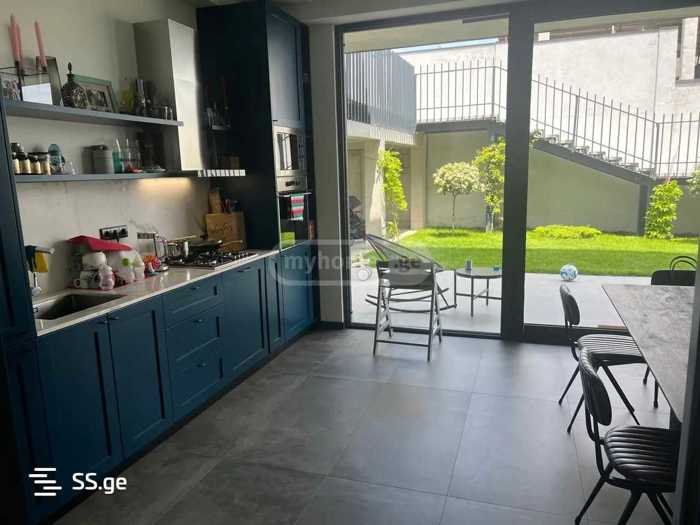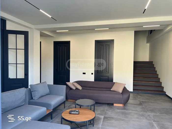 Дом полностью обставлен, с бассейном и очень красивым двором, где расположены две беседки: одна открытая, а другая с закрытым камином. Дом находится в десяти минутах от площади Свободы, также очень близко к дому расположен парк на горе Мтацминда.