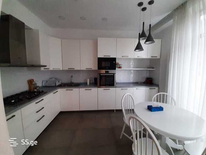 Сдается двухэтажный дом на длительный срок в престижном районе, недалеко от озера Лиси, за 112. Дом площадью 175 кв.м, с двумя большими балконами, изолированной кухней, двумя кладовыми, четырьмя ванными комнатами и четырьмя спальнями, из которых две имеют свои собственные ванные комнаты. Комплекс располагает собственным бассейном, службой охраны и уборки. С балкона открывается вид на Тбилиси. Цена 3200 долларов США.