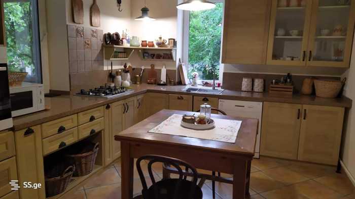 Сдается или продается 3-этажный дом в Дигомии 7. В доме 10 комнат, ванная с туалетом. У дома есть мансарда с красивыми видами, подвальное помещение, камин на 1-м и 2-м этажах, балконы. Полностью меблирован. Интернет, центральное отопление, отдельное здание во дворе. Место для парковки во дворе.