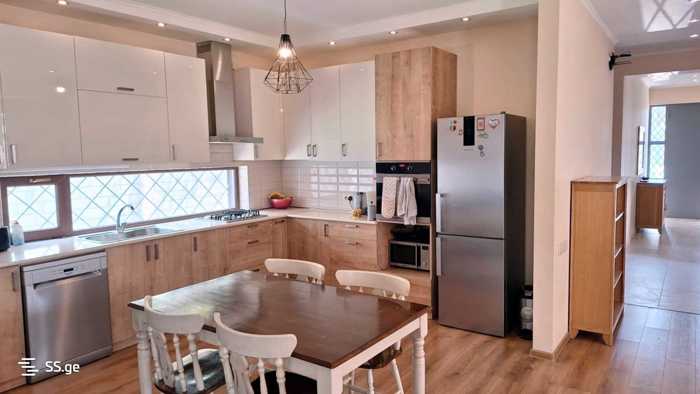 Сдается двухэтажный современный дом в Дигоми 7, с открытой планировкой на первом этаже, который сочетает кухню, столовую и жилые пространства. Кроме того, есть кабинет, который также можно использовать как спальню. На втором этаже находится одна главная спальня и три спальни, каждая из которых оборудована индивидуальными шкафами и санузлами, что обеспечивает комфорт для всех жителей. Экстерьер отделан травертиновым камнем и имеет структуру, напоминающую Мюнхен. Недвижимость расположена всего в нескольких минутах от общественного транспорта, ресторанов и супермаркетов рядом с Тбилисский Моллом, что делает его идеальным выбором для тех, кто ищет как стиль, так и доступность. Основные характеристики включают: Спальни: 4, Санузлы: 5, Кабинет: 1, Дополнительные помещения: гараж и прачечная.