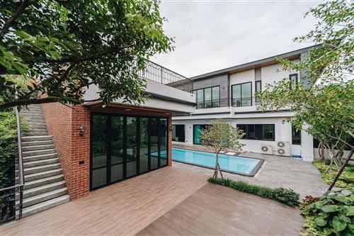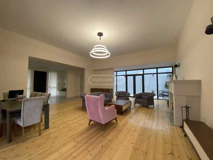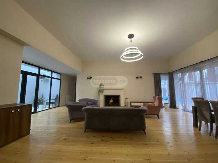 Сдается новый, современный, витражный и очень красивый дом на Дигоми 8, нежилой, дом спроектирован и построен по современным стандартам, площадь 450 кв.м включает в себя 8 комнат, 6 спален, все с хозяйские спальни, мебель заказана и скоро будет заполнена, двор зеленый, аккуратный, с бассейном.