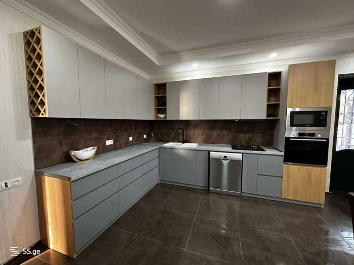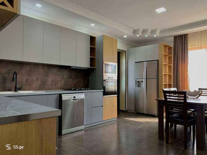 Сдается 4-этажный частный дом в экологически чистом районе рядом с Тбилисским морем. Площадь участка составляет 700 кв.м, жилая площадь 400 кв.м плюс -1 этаж 120 кв.м. Дом новый/отремонтированный. 5 спален и кабинет. Гостиная и кухня изолированы. Два санузла и 4 туалета, телевизор и вся необходимая техника. В каждой комнате есть кондиционер. Во дворе установлены камеры видеонаблюдения. Мебель и ремонт дорогие. На -1 этаже находится большой зал с камином, рядом с магазинами, Никора, кафе "Гардения", аптеками и Аквапарком Джино Пхередайси.
