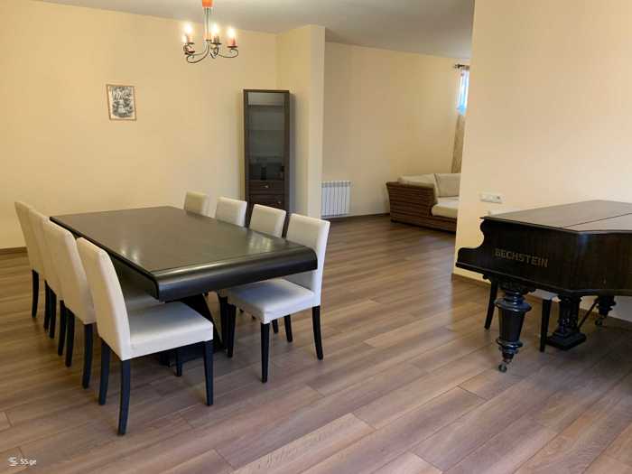 На улице Гришашвили, в 750 метрах от бани, сдается дом, общей площадью 350м. 266 м без внешних террас. - 5 спален - кабинет - кинотеатр - столовая - гостиная - кухня - бар - 3 балкона - котельная - 3 кладовки Внутренний двор оборудован мебелью и камином. Второй камин также находится в столовой. Во всех номерах: отдельный санузел, кондиционер, небольшой холодильник, телефон, телевизор (32-55"), пожарная сигнализация. Развлекательный зал (кинотеатр) - телевизор 75", караоке, лазерное освещение, джакузи. Кухня полностью оборудована, в том числе 2 стиральные машины, сушилки, 2 холодильника.