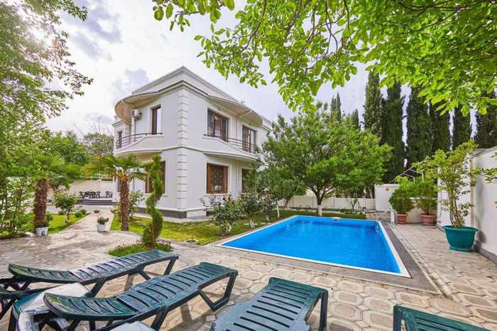 Сдается вилла (в Тбилиси Хиллс) в новом поселке, жилой дом площадью 650 квадратных метров, 6 комнат и четыре спальни в тихом уютном месте. Также есть бассейн площадью 50 квадратных метров.
