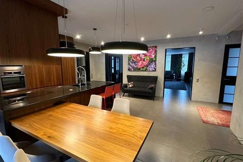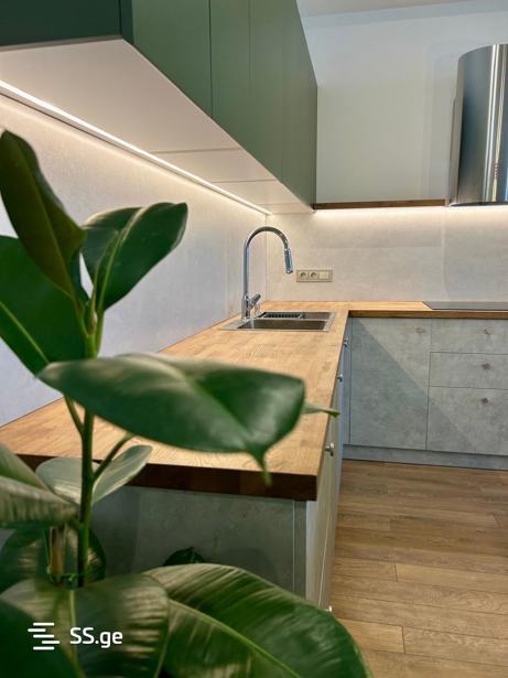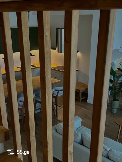 "Сдается дом премиум-класса в Лиси Тхинавали (Улица Элене Вирселадзе) Представлен трехэтажный жилой дом с общей жилой площадью 220 кв.м, полностью меблированный и готовый к проживанию. Планировка I этаж: • 1 спальня • Гостиная и кухня (открытое пространство) • Санузел II этаж: • 2 спальни • Общий санузел • Мастер-спальня с отдельным санузлом III этаж: • Рабочий / Кабинет Мебель и Интерьер • Все спальни полностью меблированы: Кровать, шкаф, тумбочки, скамейка • В доме имеется вся необходимая мебель: Диван, обеденные и рабочие столы, стулья, журнальный столик • Во всех комнатах установлены светлые и темные занавески Кухня • Полностью укомплектована всей крупной техникой Отопление и комфорт • Центральное отопление • Водонагреватель • Индивидуальные термостаты для каждого помещения • Теплый пол в ванных комнатах • Встроенные шкафы в мокрых зонах Безопасность и технологии • Видеодомофон • Датчики движения • Уличные камеры • Удаленная блокировка/открытие дверей • Охранная компания обслуживает дом Строительство и материалы • Здание теплоизолировано минеральной ватой • Используются стеклопакеты высокого качества Двор и открытое пространство • Автоматические ворота с пультом • Открытая парковка на 2 автомобиля • Передний и задний дворы соединены пешеходной дорожкой • Установлена Irrigation система • Посажены хвойные растения и фруктовые саженцы • Уход за двором и садом обеспечивается нанятой компанией."