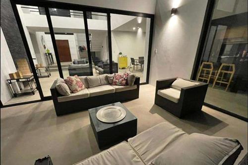Сдается дом новой постройки 370 м2, 9 комнат, 5 спален со всеми своими санузлами, на втором этаже веранда 30 кв со стороны двора. Двор 1450 квадратных метров, с 8-метровым бассейном, 35 квадратных метров с панчаятом и уличным камином. В доме есть крытый 4K 3D кинотеатр. Укомплектована всей необходимой мебелью, техникой и системой безопасности (камеры, сигнализация, огнетушители и т.д.). В доме установлена система «умный дом», позволяющая контролировать все из любой точки мира. Во всех номерах есть кондиционер и полы с подогревом. Дом расположен в 2 милях от Британской школы.