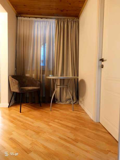 Сдается отремонтированный, меблированный двухэтажный дом в финском стиле в Вашлиджвари с озелененным двором. На первом этаже дома есть гостиная с работающим камином, кухня, одна спальня и санузел. На втором этаже есть вторая спальня и большое гардеробное пространство, где можно сделать третью спальню. Дом оснащен всей необходимой мебелью и техникой. Дом сдается минимум на 1 год.