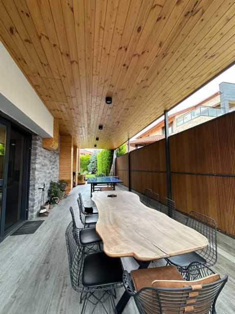 Дом построен 30 лет назад, 2 этажа + мансарда и подвал. С ровным рельефом на участке. Все коммуникации, во дворе плодоносящие деревья, виноград, источник, место для машины.