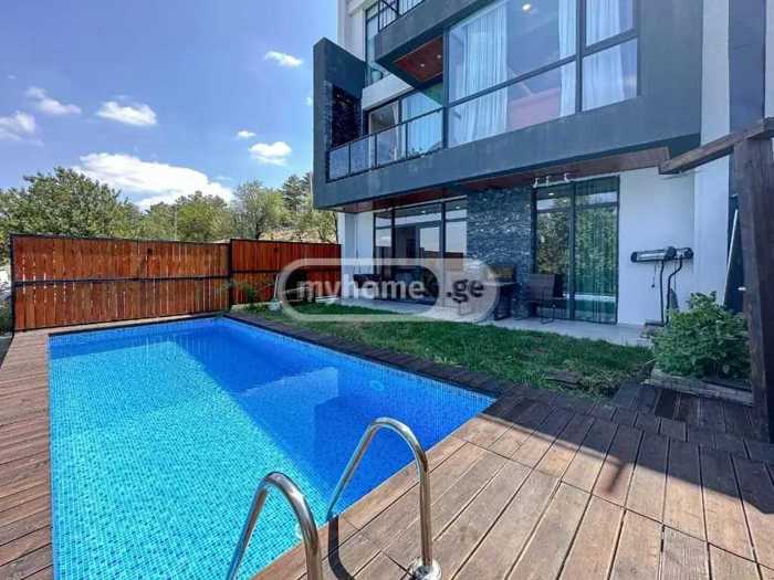 Это уникальный современный дизайн умного частного дома, который включает: две жилые зоны, 5 спален, бассейн, сауну, передний и задний дворы с крытой парковкой для двух автомобилей. В 5 минутах езды от школ. Идеально расположено между Кахетией и Цхнети. Построено из испанской плитки, с подогревом полов и аксессуарами Roca. Все двери и шкафы выполнены из массивного дерева. На каждом из трех этажей есть отдельный камин. Тренажерный зал и кабинет/игровая комната. Бассейн с мозаичным дизайном и открытым душем. Дом полностью меблирован мебелью высокого класса, с отдельным баром и кухней, кинозалом с проектором. Все оконные оформления элегантно выполнены с импортированными шторами, включая мебель для переднего и заднего дворов. Основная терраса имеет красивый водопад, а в обеих лаунж-зонах есть 85 и 70-дюймовые LED телевизоры, а третий LED телевизор установлен в спальне с вращающейся стеной. Оборудован паровой сауной и тренажерным залом. Ванных комнат для хозяев и гостей оснастили как душевыми, так и джакузи. Просторная открытая кухня выполнена из натурального дерева и обустроена всеми удобствами/оборудованием, включая встроенную микроволновую печь, газовую плиту, двухдверный холодильник и отдельную, закрытую рабочую кухню с встроенной посудомоечной машиной. Концептуально разработанная, диверсифицированная и комфортная умная вилла, построенная с учетом высокого качества и эстетики, создающая атмосферу гармонии и отличное место для вечернего отдыха, которое незабываемо. • Статус: частный дом • Общая площадь: 312 (м²) • Площадь двора: 200 (м²) • Этажи: 3 • Комнаты: 8 (спальни 5) • Санузлы: 5 • Кухня: 2+1: да • Полностью меблированная с 3 LED • Состояние: новостройка и после ремонта • Подогрев полов: да. • Бассейн с подогревом: да • Паровая сауна: да • Балкон: да • Веранда: да • Кладовая, подвал, отдельная кладовка/прачечная. • Телефон: да • Кондиционер: да • Горячая вода, центральное отопление: да • Отопление, центральное отопление: да • Интернет: да • Мебель: да • Шкаф: да • Камин (3) • Двор: да • Парковка • Бассейн: да