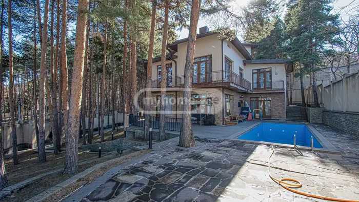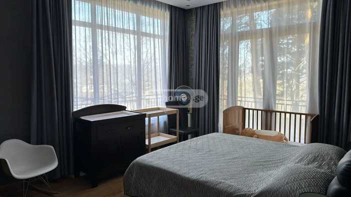 В Цхнети мы предлагаем на продажу красивый современный дом площадью 600 кв.м. До центра Тбилиси 30 минут. Площадь земельного участка составляет 1000 кв.м. Дизайн интерьера выполнен в современном стиле. Высокие потолки! Огромные панорамные окна наполняют дом светом. Планировка дома делает ваш отдых максимально комфортным. Первый этаж: гостиная площадью 53 кв.м., с выходом на веранду и бассейн. Полностью оборудованная кухня, доступная терраса, две спальни, три ванных комнаты. Второй этаж: большая спальня с собственным санузлом и большим гардеробом, четыре спальни и две ванных комнаты, прачечная. Гараж на два автомобиля. Прекрасные виды на лес! Есть возможность присоединить дополнительные территории с той стороны, где дом граничит с лесом.