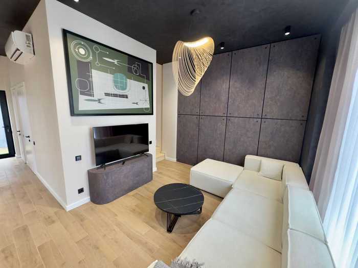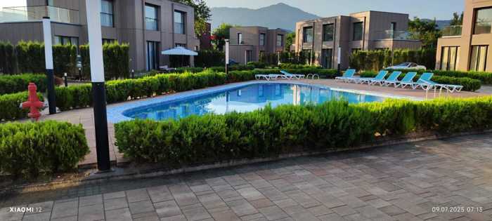 Description from the seller A turnkey villa is for sale in the new cottage village VILLA PARK in Chakvi. The villa is located in a quiet, green, ecological area. 500 m to the sea. The cottage complex is fully completed and landscaped, paths and courtyards are paved. The complex is equipped with a swimming pool and sun loungers, and is fully prepared for both summer holidays and comfortable living all year round. The closed territory of the village is equipped with a security system. The total area of the villa is 145.40 sq.m and consists of 2 floors. 1st floor - entrance hallway/veranda 15.40 sq.m - large living room 44.89 sq.m - guest bathroom 5.01 sq.m - utility room 7.40 sq.m 2nd floor (2 bedrooms, each one has its own bathroom) - entrance hall with stairs 11.7 sq.m - 1st bedroom 17.70 sq.m - 1st bathroom 5.73 sq.m - 2nd bedroom 16.02 sq.m - 2nd bathroom 7.09 sq.m - open terrace 14.46 sq.m The house is gasified. Hot water is heated by gas. Gas heating: on the 1st floor there is a underfloor heating system, on the 2nd floor there are heating batteries. The villa can be rented out either through a management company or independently. You can also live in the villa permanently. Without restrictions. The area of the plot on which the villa is located (including the lawn around the villa) is 240 sq.m. There is a convenient parking space on the territory of the villa next to the house. The villa is completely ready for occupancy: high-quality repairs have been completed, a beautiful design project has been perfectly implemented, the house is equipped with high-quality furniture and appliances. High-quality materials and equipment (walls, windows, doors) were also used in the construction of the villa building. Each villa is a separate building (without common walls).