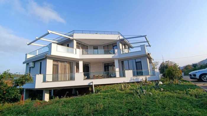 Продается видовая Вилла с ремонтом мебелью и техникой в Чакви (пригород Батуми). Все новое, никто не жил. Отличный вид на долину, горы, море. Солнечный большой 1350 кв.м. собственный участок земли с мандаринами, апельсинами, пальмами и тп.. Весь комплекс состоит из трех вилл на территории 5500 кв.м. на которой расположен двор, стоянка, бассейн, инфраструктура и много деревьев. Красивая и большая территория. 2 жилых этажа с террасами и огромная терраса на третьем этаже. Везде панорамные окна. Из каждой комнаты выход на террасы. Большая гостиная с кухней, 3 спальни, 3 санузла, кабинет(либо еще одна четвертая спальня). Батареи, газ. Подробно можно ознакомиться в моем видеоролике. Ссылка на видео в объявлении, отправлю по запросу актуальное более новое.