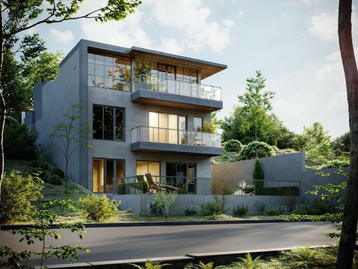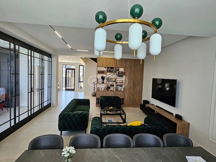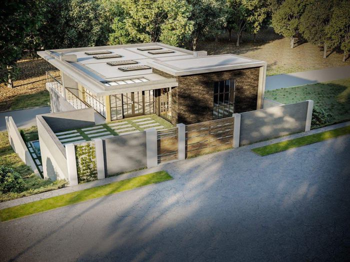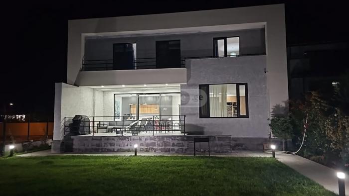 Дом, введенный в эксплуатацию, находится в зеленом каркасном состоянии (электричество проведено, отопительные трубы уложены, стены оштукатурены, газ и вода подключены, пол натянут).. Он расположен на земельном участке площадью 400 кв.м. В строительстве использовались материалы самого высокого качества, алюминиевые витражи Alutek с высококачественным теплозащитным стеклом, проведено отопление; для электроснабжения использованы материалы и методы планировки самого высокого качества. На дворе залит полированный бетон самого высокого качества, двор озеленен, также есть возможность строительства бассейна в дворе. На воротах и гараже установлена автоматическая система открытия/закрытия с итальянскими двигателями. В гараже предусмотрен специальный источник энергии высокого качества для зарядки автомобилей. С террасы открывается прекрасный вид на Тбилиси; помимо террасы, у дома плоская крыша и фактически более 100 кв.м свободного пространства, нужно только положить плитку. Дом находится в населённом пункте, в 10 минутах от площади Свободы в Новом Цхцинвали.