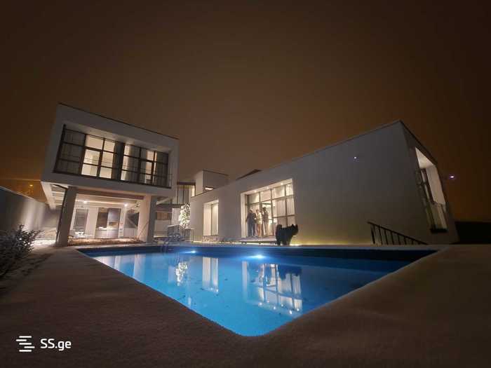 Продается трехэтажный частный дом в Цхваричале с панорамным видом на Тбилиси. Общая площадь 1300 м2, есть: 5 спален, 2 ванные комнаты, большая гостиная в студийном стиле с камином, кухня и 2 балкона с видом на Тбилиси. Бассейн отделан мозаикой, с отоплением и фильтрацией. Во дворе расположено капитальное здание площадью 70 квадратных метров для хранения.
