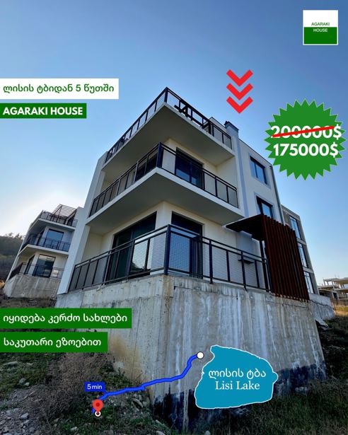 📣 Ликвидационная цена, которая больше не повторится 📣 Не упустите скидку в 20 000 $ и купите 3-этажный частный дом с двором за 145 000 $, вместо 165 000 $, на пути к озеру Лиси, в 5 минутах от цены квартиры. Дом Агарки на расстоянии 5 минут от озера Лиси⏱️ Вилла, продается дёшево по оценке банка, 3-этажный частный дом с двором 🏡 📍 Вилла - место, где природа, спокойствие и город гармонично сосуществуют 🌳 🧱 Эффективное строительство и проект 📐 🏗 3 этажа - 300 м² 🌳 Двор - 180 м² Вид на Тбилиси, Лиси и Кавказ ✅ ⚒ Черновая отделка - энергоэффективные окна и двери, водопровод и электричество. На территорию курсирует общественный транспорт ✅ 📉 Скидка: 165 000 $ → 145 000 $. Оценка банка для дома - 160 000 $.