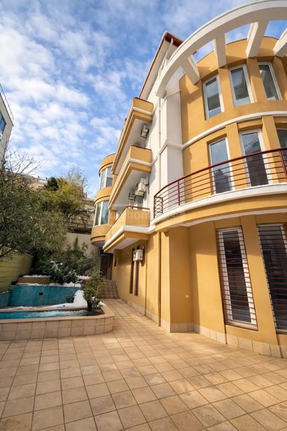 Индивидуальный жилой дом ул. Георгия Данелия, 17 Рядом с высокоэтажным зданием университета 840 кв.м жилой площади 593 кв.м площадь двора 8 комнат 2 кухни 2 подсобных помещения 8 ванных комнат Мансарда студийного типа с террасой (160 кв.м) Первый этаж в стиле студии с камином и кухней (160 кв.м) 8 балконов 1 декоративный бассейн Гараж на 4 машины