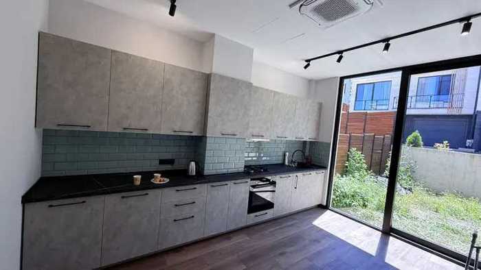 Частный дом Общая площадь: 270 Количество комнат: 5 + кухня + техническая комната Количество санузлов: 3 Количество балконов: 3 Собственный двор: 80 кв.м Гараж: 20 кв.м Складская площадь: 40 кв.м Деревянный паркет Центральное отопление Интернет + телевизор