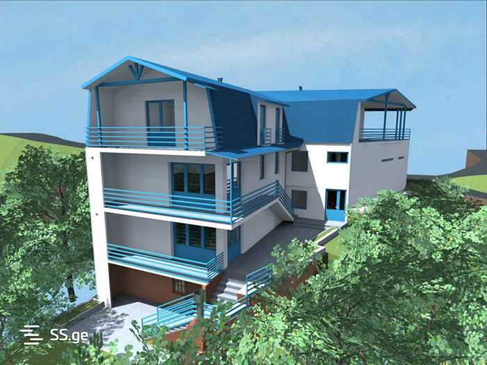 Багеби - 351 м², новый проект, разрешение на строительство, фундамент заложен, можно сказать, что 30% готово, есть красивый террасный двор, при необходимости можно пристроить много фруктовых деревьев, сосед также продает 600 м².