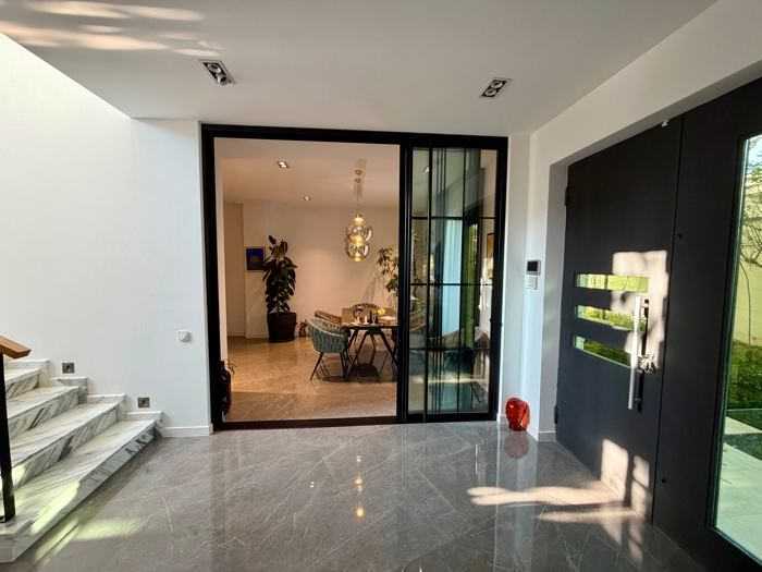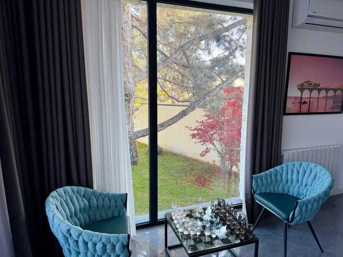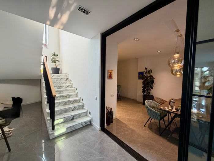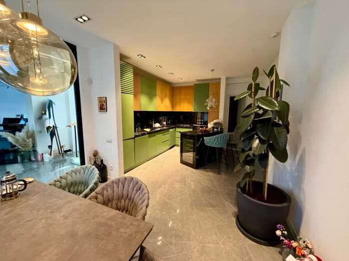 Построенный в 2022 году, ухоженный красивый дом. Удивительный двор с дорогой зеленью. Поливная система. Гараж на 2 машины и еще место для 2 машин на дворе. Лучшие мебель и техника. 3 спальни, шкаф, подвалы. Теплый пол в 80% дома. Выход на крышу с прекрасным видом оттуда. Кроме того, я продаю 600 квадратных метров земли рядом, возможно объединение участков и расширение дома. Я собственник.