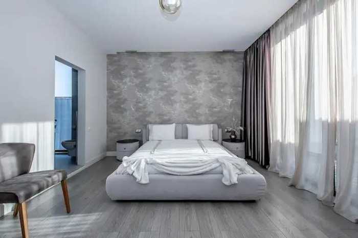 Адрес: Мцхета, Грузия Площадь: дом 245 квадратных метров, двор 50 квадратных метров Количество комнат: 5 Спальни: 4 (два мастер-бедрума) гостиная-столовая вместе Парковка: на первом этаже дома для 2 автомобилей, зарядное устройство для электромобилей Отопление: центральное, теплый пол в мокрых зонах и в гостиной Кондиционирование: система центрального отопления-охлаждения, индивидуальный пульт в каждой комнате Дополнительные преимущества: резервуар для воды на 400 литров, подключение к генератору (чтобы холодильники, отопление и WiFi работали в случае отключения света), система видеонаблюдения по периметру дома Мокрые зоны выполнены из микроцемента, уложена паркет из белого дуба, кухня также изготовлена из белого дуба и оснащена оборудованием Teka Высота потолка: На уровне гаража: 2.5 м На первом этаже: 3.1 м На втором этаже: 2.85
