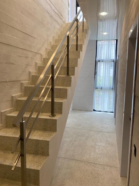 В Батуми, в поселке Авгия, продается строящийся дом в 800 метрах от магистрали Сарпи-Гонио с панорамным видом на море и горы. У дома будет собственный отделанный двор. Внешний фасад выполнен из алюминиевых композитных панелей, алюминиевых оконных рам и витражей, а также стеклянных перил.