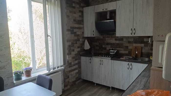Продается частный дом в Рустави, остается мебель и техника. Гостиная, кладовая, подвал, фруктовые деревья во дворе.