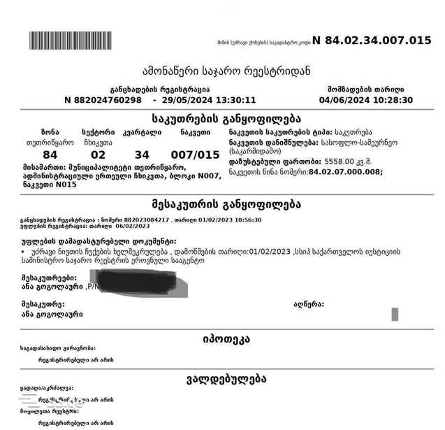 Срочно предлагается в ипотеку участок земли в Тетрискаро за 9000 долларов по договору купли-продажи, собственник будет использовать землю в течение года и будет платить прибыль 500 долларов каждый месяц.