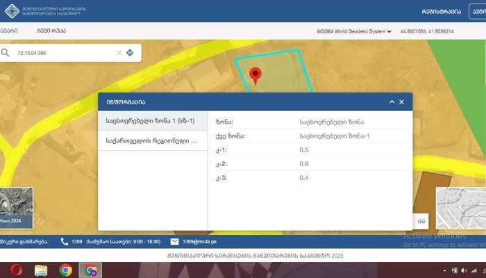 Продается земельный участок в жилой зоне 1 в Георгитсминде с согласованным проектом Улица Церетели Кадастровый номер: 72.13.04.028