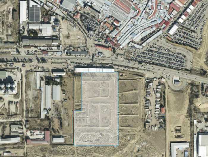 Участок располагается напротив рынка Лило, на расстоянии 20-25 метров от дороги.