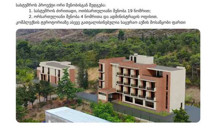 Уникальная инвестиционная возможность в Старом Тбилиси! Продается участок земли для отеля в Абанотубани, самой привлекательной туристической зоне Тбилиси, панорамные виды на весь город, наклонный рельеф - идеальное для архитектурных решений, зона исторического наследия - стабильная будущая стоимость, данные проекта: 400 кв.м земельного участка, 278.2 кв.м строительной площади, 973.0 кв.м общей строительной площади, с утвержденным эскизом отеля, высота конструкции: 16.12 м, запланированная концепция отеля: 481.8 кв.м номера отеля, 104.7 кв.м кафе-кухня, 108.7 кв.м летняя площадь, 30.9 кв.м административное пространство, 128.2 кв.м лестницы, 88.7 кв.м коридор, 30.0 кв.м вспомогательная площадь, технические параметры: K1 = 0.6 (коэффициент застройки) K2 = 1.8 (коэффициент интенсивности застройки) K3 = 0.3 (коэффициент озеленения) Цена: 800,000$ (2,000$ за кв.м). Это редкая возможность в историческом Старом Тбилиси, где новые строительства строго регулируются, что обеспечивает стабильную стоимость ваших инвестиций в будущем.