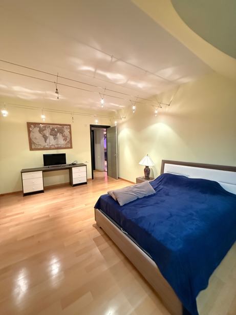 В Тбилиси, на улице Палиашвили, 64, в лучшем месте, сдается квартира площадью 260 квадратных метров, с 6 спальнями, 2 санузлами, большой гостиной, большой кухней, а также есть 2 балкона. У квартиры есть паркинг с шлагбаумом, она оборудована всей необходимой техникой и мебелью, лифта нет, цена 1500 долларов, сдается минимум на 1 год. В данный момент две спальни преобразованы в складское помещение и также одна в кабинет. При желании, конечно, вы можете вернуть их обратно в спальни.