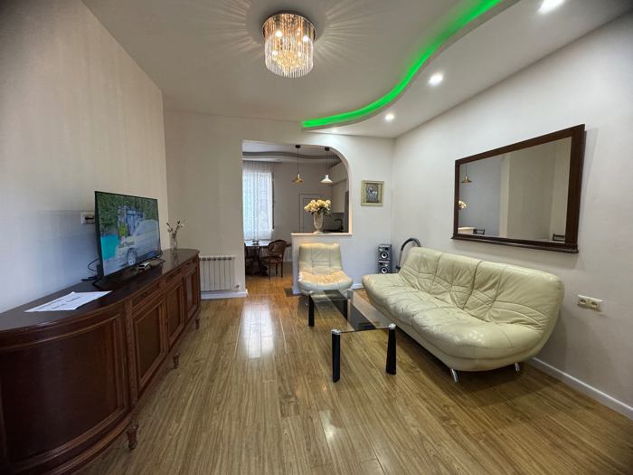 Сдается в аренду на год на улице Чолокашвили, хорошо меблированная 2-комнатная квартира на 4-м этаже частного дома, с центральным и напольным отоплением, 1 изолированной спальней. Цена: 400$$$