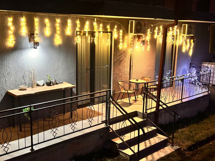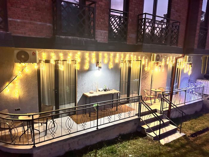 Сдается в аренду на сутки новая, отремонтированная и меблированная квартира в жилом комплексе «Eco Garedeni» в Кутаиси. Вдали от городского шума, но в то же время очень близко к городу (500 метров от ледового катка), вас ждет совершенно другая обстановка и интерьер, уютные, светлые, чистые комнаты, свежий воздух, тишина, покой и комфорт. В квартире предоставляется чистое постельное белье и полотенца. Есть балкон и внутренний дворик. Бесплатная парковка. При бронировании размещение осуществляется самостоятельно с помощью инструкций.