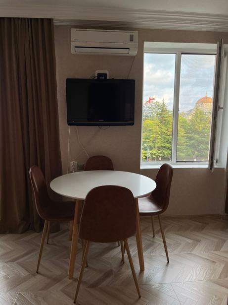 Сдается однокомнатная квартира в центре Поти, с видом на центральный храм, недавно отремонтирована, с изолированной спальней. С техникой и мебелью.