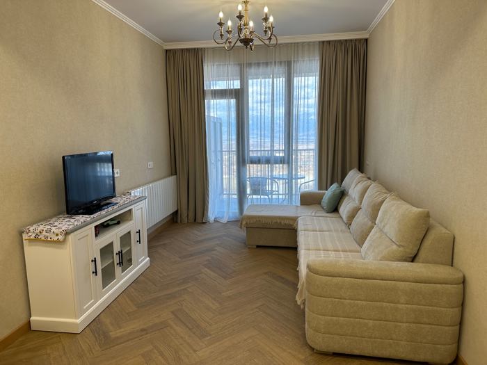 Сдается новая отремонтированная, необжитая квартира с одной изолированной спальней в новостройке на проспекте Алазани в Телави. Центральное отопление, вся необходимая мебель и техника. На 6-м этаже. Цена: 1200 лари (с предоплатой за первый и последний месяцы).