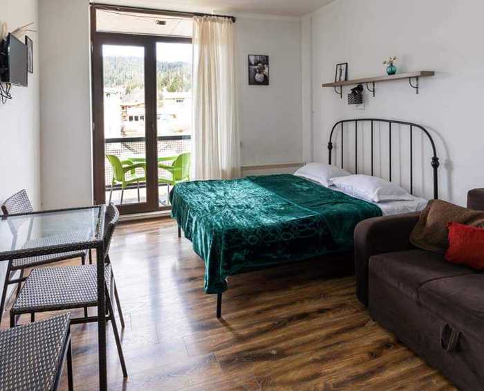 Апартамент Вилла Монтес расположен на краю леса, в тихом и уединенном месте. Комплекс имеет большой и огороженный двор, круглосуточную охрану, видеонаблюдение 24/7, бесплатные парковочные места, детские / развлекательные зоны, прогулочные и расслабляющие пространства / гамак. Комплекс окружён как хвойными, так и лиственными лесами, а на юге открываются панорамные виды на Бакуриани. В апартаменте вы найдете всю необходимую мебель, технику и инвентарь, предметы быта и гигиенические средства. Наш апартамент рассчитан на 4-5 человек и включает; изолированную спальню - 1 двуспальную кровать с ортопедическими матрасами. Гостиная - раскладной диван, рассчитанный на 2/3 человека, большая кухня с встроенной техникой, соответствующим инвентарем и санузел с всем необходимым оборудованием. Цены варьируются и зависят как от времени года, так и от количества дней аренды.