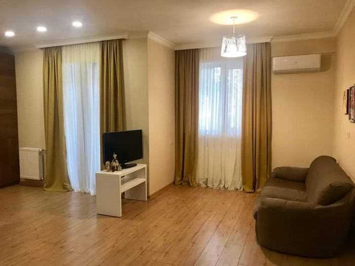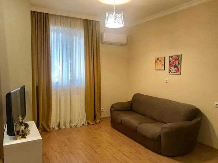 Квартира сдается на 4 этаже, напротив главного входа в морской парк. Подробности о квартире: 55 квадратных метров (1,5-комнатная квартира) одна спальня (с двуспальной кроватью и шкафом) гостиная (три кресла, односпальная кровать и один раскладной диван; телевизор) кухня (новый холодильник, стиральная машина, газовая плита и шкаф) остановка перед входом. На общественном транспорте до станции метро Сараджишвили и театра Ахметели 10 минут. Если у вас есть дополнительные вопросы, пожалуйста, напишите мне в WhatsApp или Viber. Цена: 700 лари.