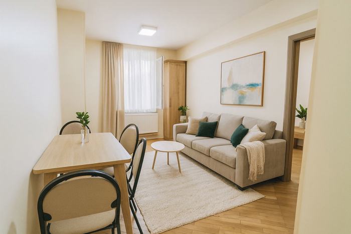 Сдается 4-комнатная новая квартира в Сабуртало, на проспекте Казбеги, в комплексе Axsis. Это квартира на южной стороне, солнечная. Окна не выходят на главную улицу, и городской шум не проникает. Вы оплачиваете первый и последний месяцы аренды заранее.