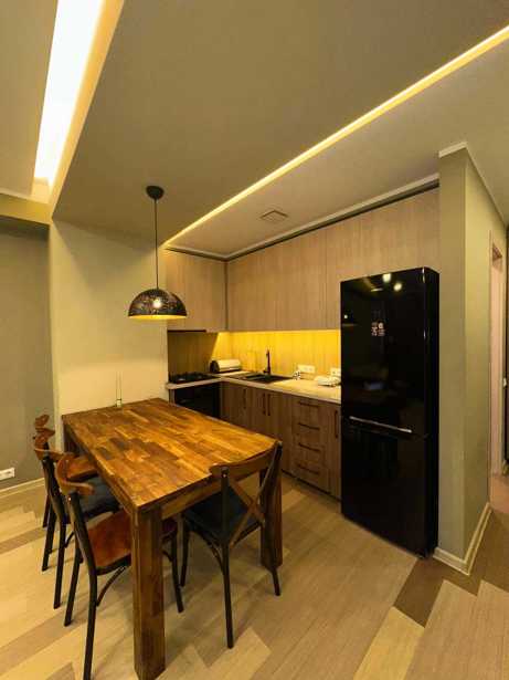 Сдается 65 м² квартира на улице Нодара Бохуи, старая постройка. Нестандартная квартира с высокими потолками и антресолью. На первом этаже гостиная-студия, большая кухня, ванная комната. На антресоли 1 спальня и дополнительно небольшая комната с дополнительным освещением. С мебелью и техникой.