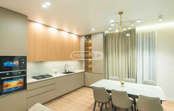 Сдаётся квартира в Сабуртало на улице Шартава, 4-комнатная квартира в новом доме, 150 кв. м, 3 спальни и 2 санузла. С мебелью и техникой.