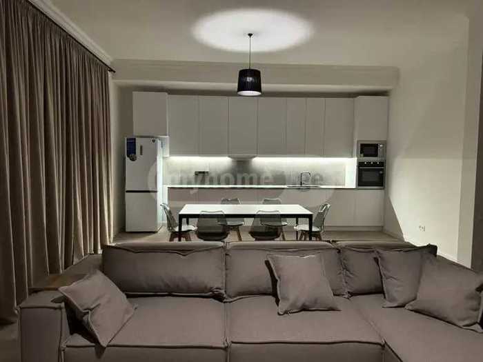 В новом здании в Атени сдается двухкомнатная квартира, отремонтированная с использованием высококачественных материалов, есть гардеробная комната.