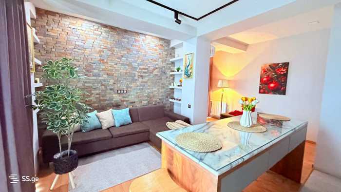 Сдается меблированная, уютная и светлая квартира в Сабуртало, на 9 этаже, в востребованном месте. Квартира включает в себя 1 изолированную спальню с отдельной гардеробной, гостиную-студию и ванную комнату, оформленную в современном стиле со всем необходимым инвентарем. Есть большой балкон с видом на двор и улицу, на который можно попасть как из холла, так и из спальни и гостиной. Квартира полностью укомплектована всей необходимой мебелью, инвентарем и техникой. В квартире имеется защищенное внутреннее парковочное место. У центральной двери жилого корпуса установлен домофон. Вход в квартиру оборудован системой безопасности с камерой для посетителей. Квартира удачно расположена рядом со станцией метро Дели (7 минут пешком) и станцией метро Важи (8 минут пешком). Предоплата за два месяца, Для получения дополнительной информации свяжитесь со мной в WhatsApp: (Ната)